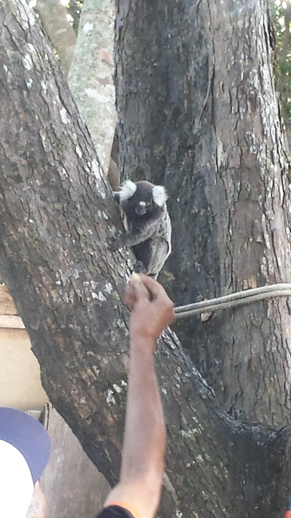 E de quebra entre as árvores tem algumas redes para descanso, onde tem alguns macaquinho que chegam bem perto esperando por frutas.